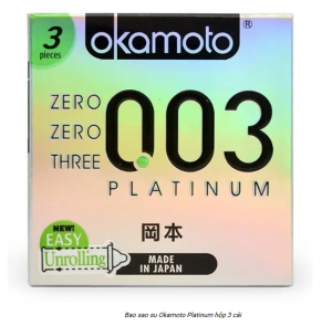 Bao cao su Okamoto 0.03 Platinum Trong Suốt siêu mỏng Hộp 3 Cái