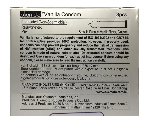 Thông tin khác Xem trên vỏ hộp Okamoto Vani