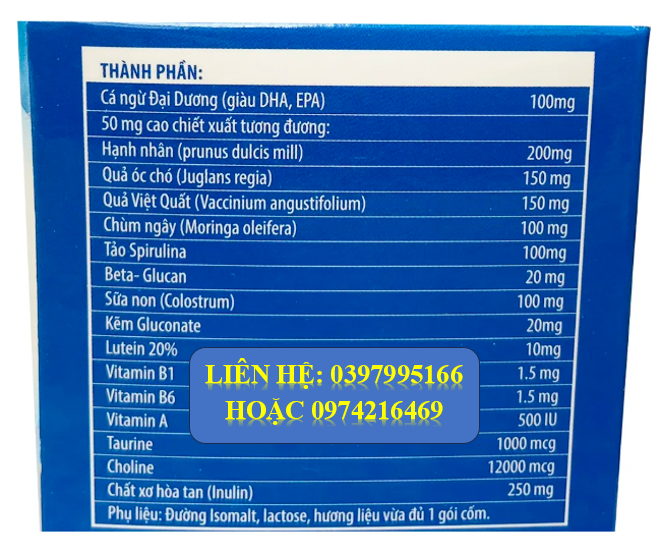 – Giúp bổ sung DHA và các vitamin cần thiết khác hỗ trợ sự phát triển não bộ của trẻ. giúp kích thích tế bảo não khỏe mạnh hơn, giúp bé thông minh, nhanh nhạy, phát triển đồng đều đều cả tinh thần và trí tuệ